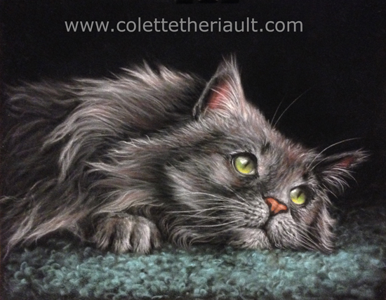 2-day Sanded paper: You will learn how to achieve realism using mainly pastel pencils and sticks on fine black sanded pastel paper (other colors available). The techniques learned during this workshop can be applied to other surfaces but the look and feel of the final result may vary (samples of various paper types will be available). The subject matter of choice for this workshop will consist of a canine head and shoulder pose with a soft muted background. Attention will be focused on eyes, mouth, nose, ears and fur as well as technique for rendering muted backgrounds. Additional references will be available and participants are encouraged to bring their own.